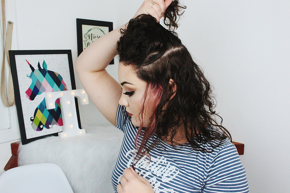 Início » Cabelos Cacheados » Coque Duplo: passo a passo com modelador